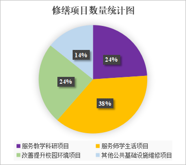 五年来,基建规划处紧紧围绕环境育人目标,聚力改善教育教学、师生生活基础设施环境,持续推动实施教学楼实验楼学生公寓体育场地修缮、外立面保温、水房卫生间改造、充电桩建设,电梯加装等修缮项目,优化拓展基础设施功能,改善学校教育教学、科研和生活环境,为学校“双一流”建设提供了基础设施保障。完成修缮工程项目259项(重点修缮项目63项)。其中,服务教学科研项目62项,服务师学生活项目97项,改善提升校园环境项目63项,其他公共基础设施维修项目37项。