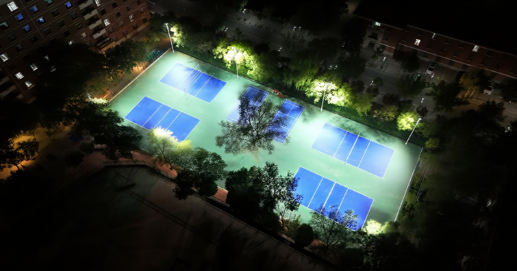 改造后运动场地夜间灯光效果